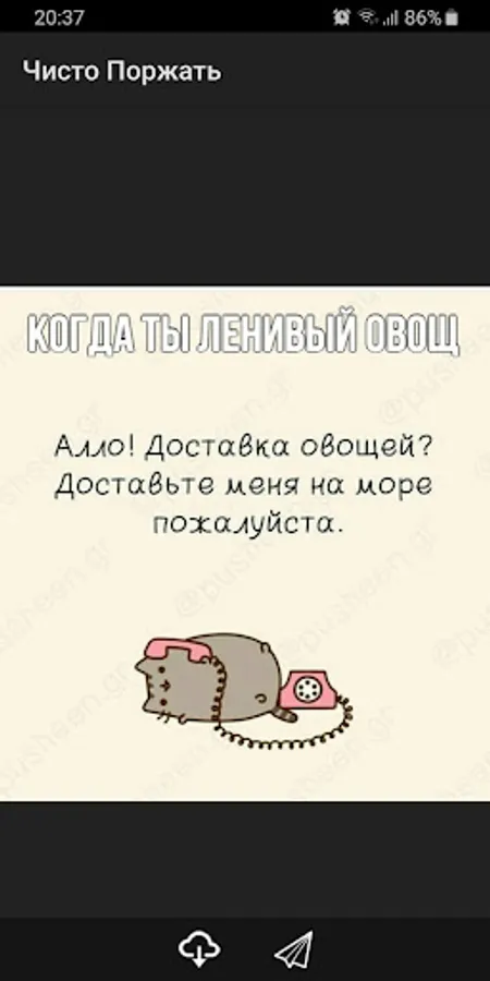 Interesting pictures and wise sayings, jokes with cats and dogs, short funny poems, jokes in photos and wedding incidents, photo jokes and car jokes, funny gifs and short videos, jokes from the life and rzhachny Internet memes, New Year's and April Fools' jokes, funny screen savers for mobile phone. 😁