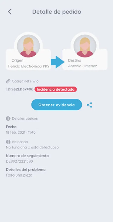 Very easy, if you press the button "I have found an incident" an automatic claim will be sent to the seller, in any case, you will also have the certified proof of your purchase available on the APP for a long period of time. Thus, you can simultaneously open a dispute in the means of payment, claim your seller or store, or whoever you want. Remember that it is a certified test with legal validity.