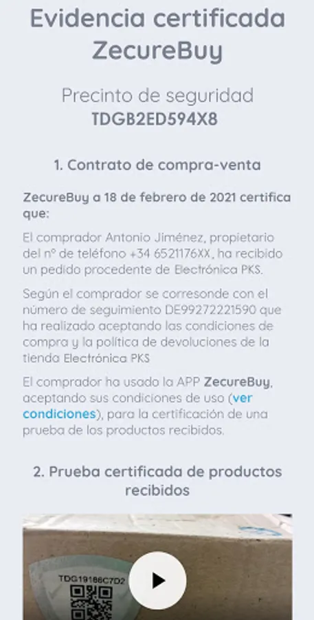 When you open the order at home, just scan the QR to start the recording of a certified video of the unpacking and thus be able to show the status of the product received. You can even show if what you bought works or not.