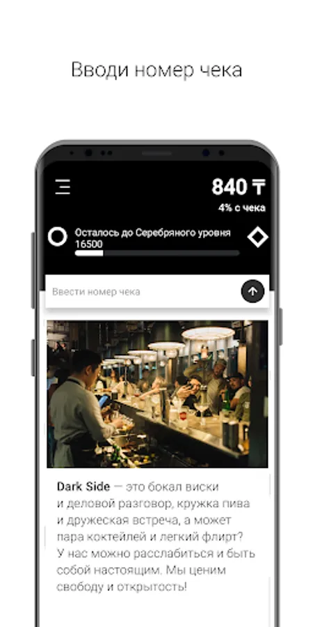 Now you can accumulate bonus points from orders and pay them through the application. Stay in touch with the Bar, stay up to date with the latest information and events of Dark Side. Leave feedback and get additional bonuses and gifts.