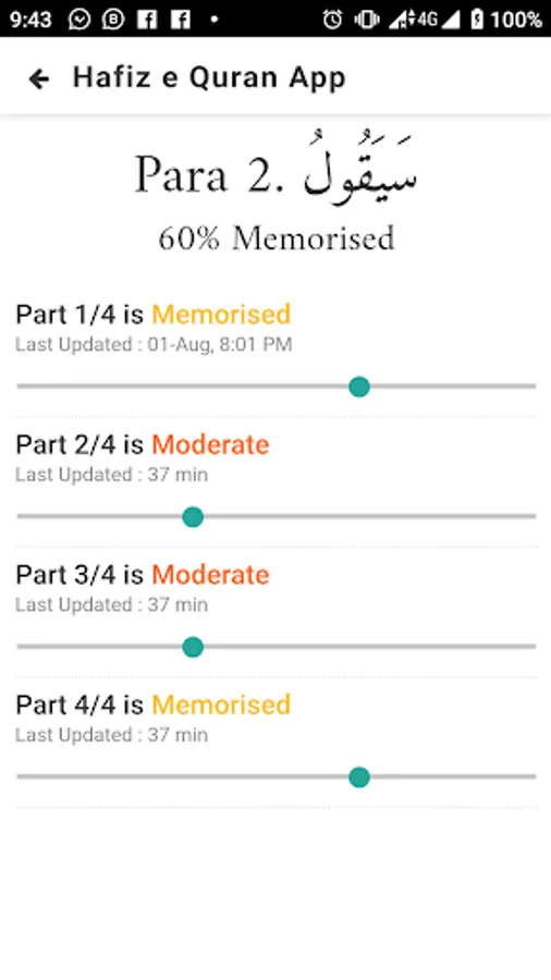 An easy app to view, improve and share your Hifz Progress. Hifz data will be synced on all devices. Daily Para revision reminder.