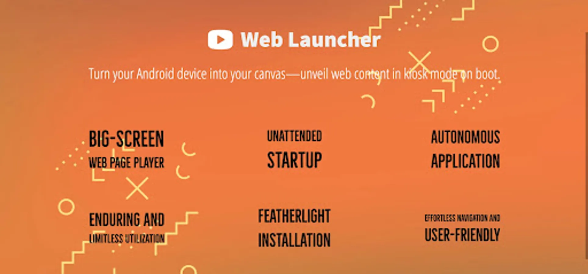 A Launch APP which starts with a Web Page shown on full-screen mode. It can be used for big-screen, Android TV, Tablets, to play dynamic web contents such as online menu, realtime news and so on.