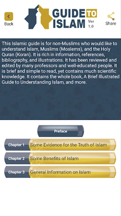 This “ Guide to Islam" is for non-Muslims who would like to understand Islam, Muslims, and the Holy Quran. It is rich in information, references, bibliography, and illustrations. It has been reviewed and edited by many professors and well-educated people. It is brief and simple to read, yet contains much scientific knowledge. It contains the whole book, A Brief Illustrated Guide to Understanding Islam, and more. The contents of this guide are;