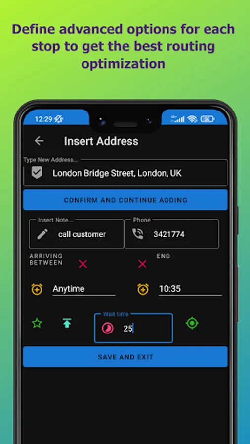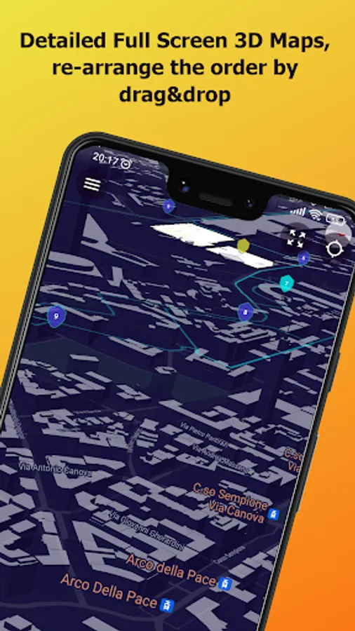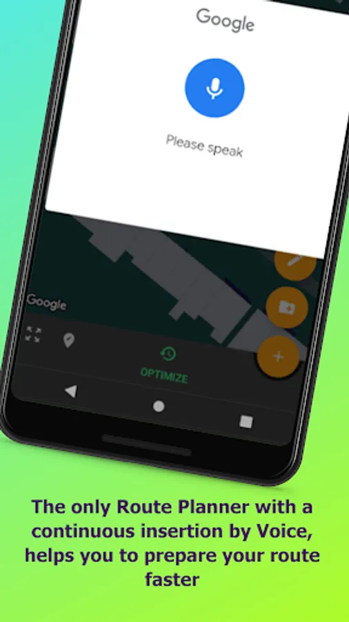 ✓ Enter the stops: by voice, text, read automatically from images/excel files QR/Barcodes or by using the search box. Otherwise you can also hold down on a point on the map to bring up the marker.