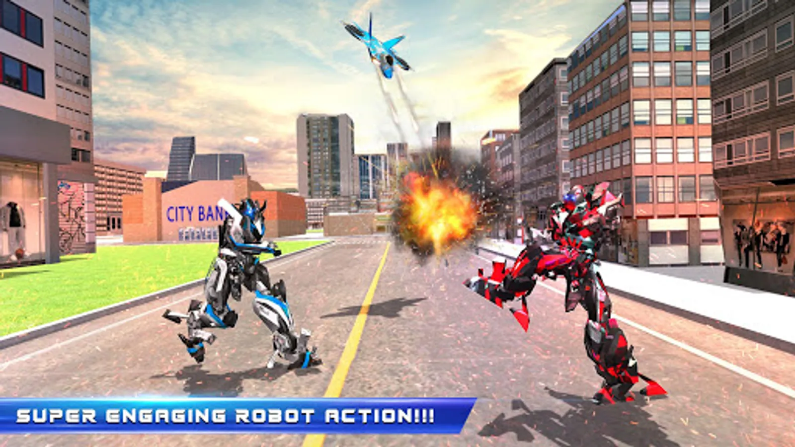 Feel the thrill of ultimate robot war in engaging Plane Robot Car Transform Mech Robot Wars adventure, where you will battle as jet robot of air robot games or future flying car from robot car transform games also miami police cop car of police car games & fulfil city rescue duty of real robot transforming games in crime city. Enjoy air robot transformation games or real mechanical person transformation games along futuristic bionic transformation games, move forward in air cyborg battles or realistic futuristic city robot wars as airplane or iron robot hero having fighter jet aircraft having muscle car robot simulator or cop car simulator skills from future robot games against evil robots including robot superhero or real mechanical person along with vicious leader flying leader having flight simulator destroying crime city futuristic robot car transformation games robot wars. Plane Robot Car Transform Mech Robot Wars fight as mech robot of best action games or eminent cop car robot games also us air force fighter plane along with futuristic robot to win futuristic robotic battle with futuristic robot transforming or US police robot transform of police car games jet simulator or real robot car transformation based airplane simulator and air robots simulator from fly robot games and use muscle car robot or miami police car robot weapons of police car games & win urban warfare in crime city.