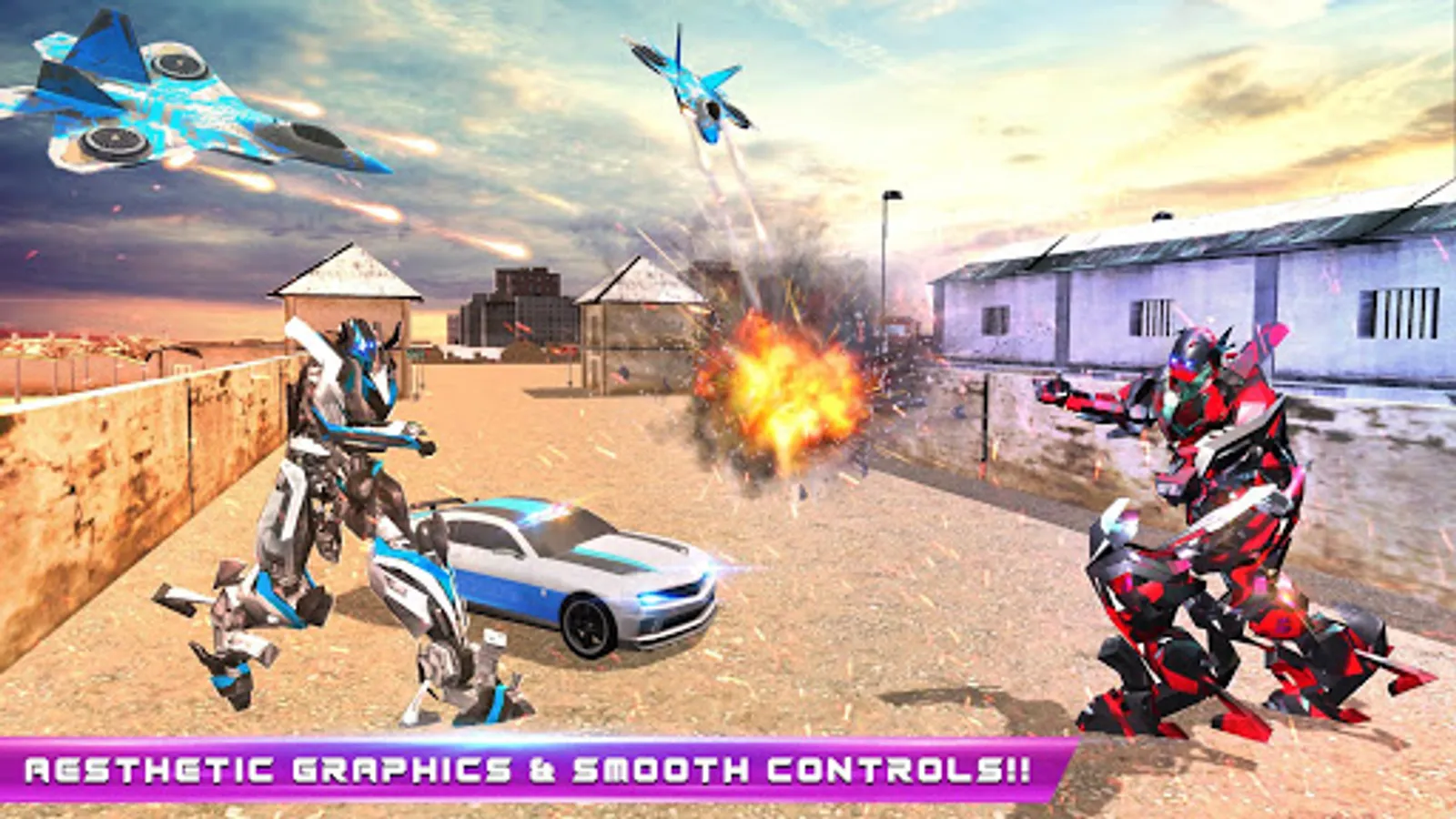 - Smooth controls & weapons from jet robot games