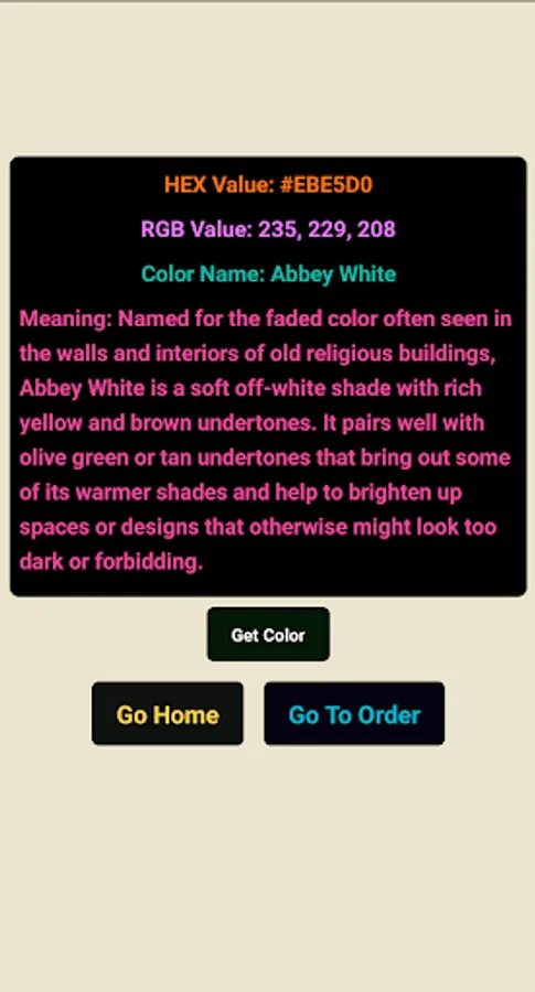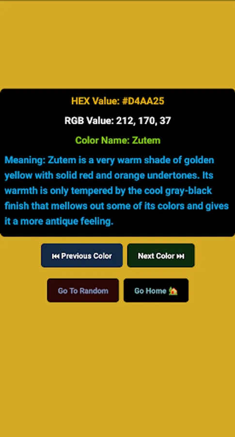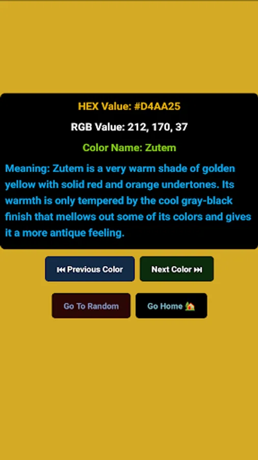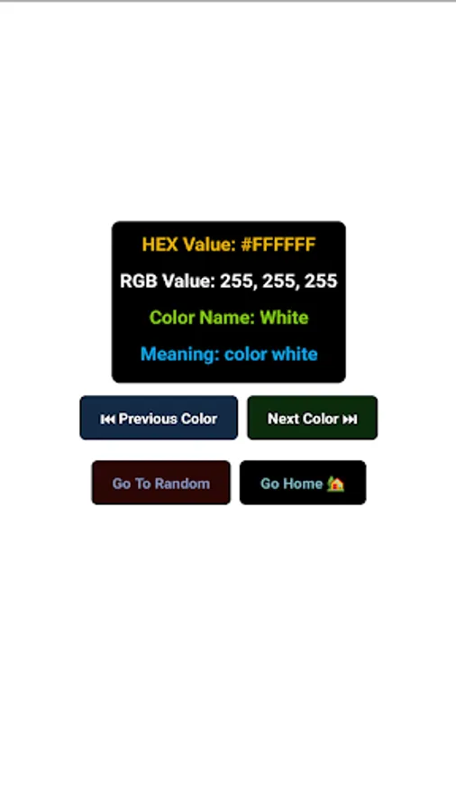 Immerse yourself in the rich variety of shades meticulously organized into categories, making it effortless to navigate and locate the perfect color for your projects. With a simple tap, you can access detailed information about each color, including its hexadecimal code, RGB values, color names, and meanings, allowing for precise color matching in your creations.