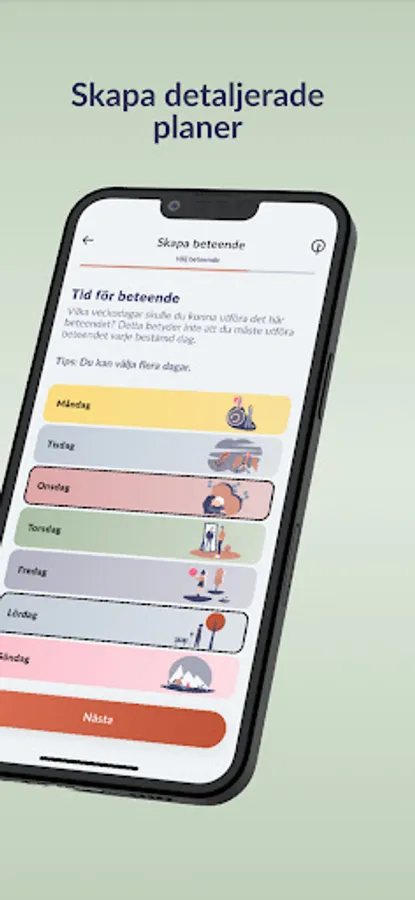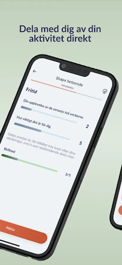 Through therapeutic exercises, you get the opportunity to identify central values in important areas of life. These values act as the basis for creating behavioral plans in line with your values. Each behavior plan is represented by a plant - which grows in line with your activity.