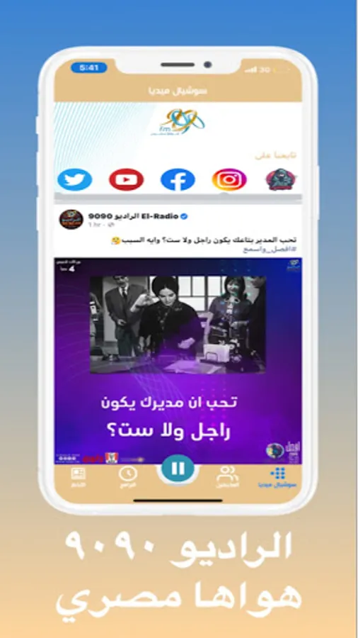 تطبيق الراديو ٩٠٩٠ الرسمي يتيح الفرصة للمستمعيين ان يستمعوا و يتواصلوا مع الراديو في اي وقت.
