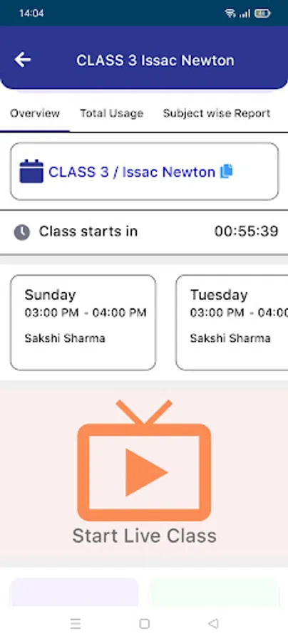1) Overview Panel: Details of all the Batches along with a calendar view of batches is present in this panel. A timer showing the 'class starts in' and 'class delayed by' works as a reminder for both faculty and students. Live class option is available in this panel so the live class can be started with just one click.