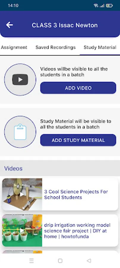 6) Study Material: This option offers an extra help to the students as the faculty can add study materials here, which can be in video format as well as document format.