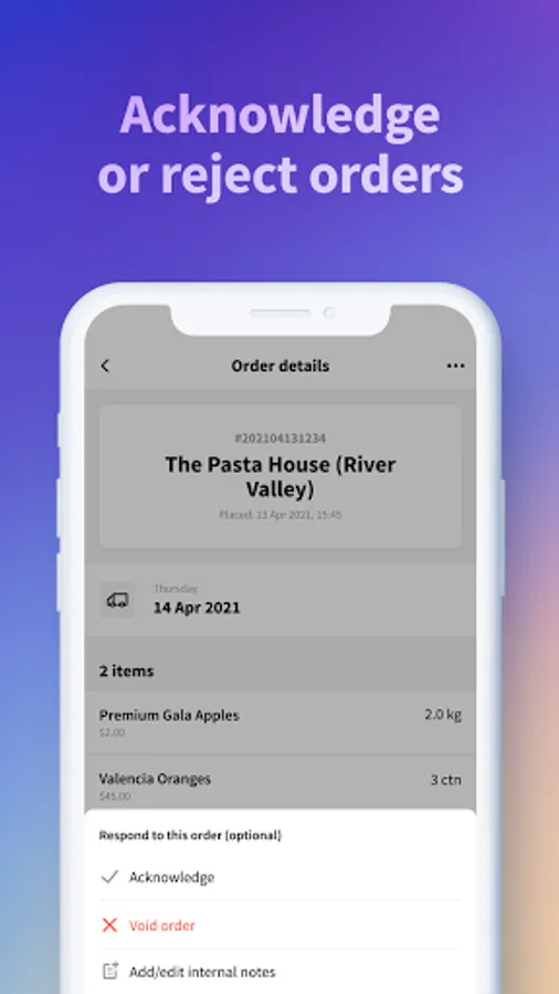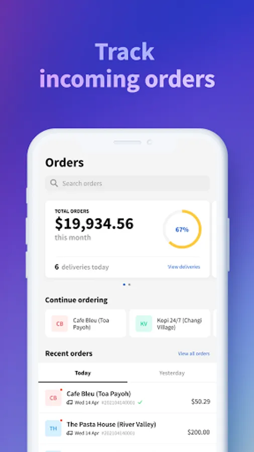 The Supplier app makes it easy for F&B suppliers to manage incoming orders from customers. Customer Service teams can now receive and respond to customers' Zeemart orders on-the-go, while salespersons will love how they can track sales live using the app.