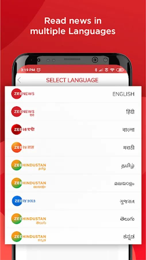 * News in Your Language: Choose language of your preference or conveniently switch to another preferred language out of English, Hindi, Marathi, Bengali ,Tamil, Malayalam, Gujarati, Telugu and Kannada.