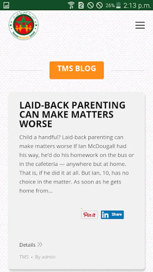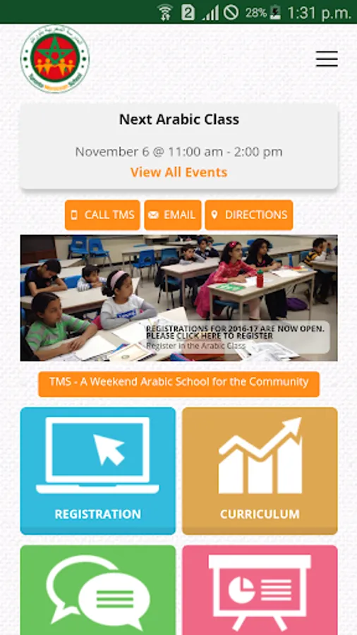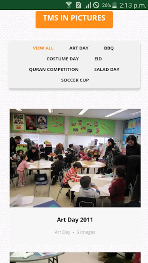 TMS has also become a space for various events and activities that are organized throughout the year to enrich the experience of the school and also to make it a fun learning experience for its students. Examples of those activities are the Annual Art Day, The Soccer competition, the Quran Recitation competition, the Arabic Reading competition... This app is a way for parents and visitors of the school to interact with some of the events which are represented in videos and albums, and also through the Homework module which is updated on a weekly basis by the school teachers in order to provide homework assignments to their students.