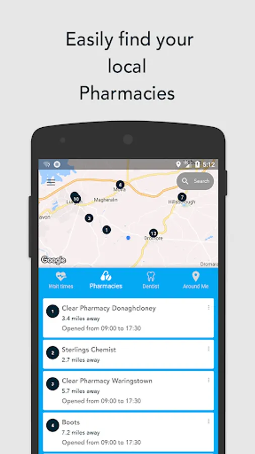 Easily locate local pharmacies where qualified health professionals can advise on treatment for common illness.