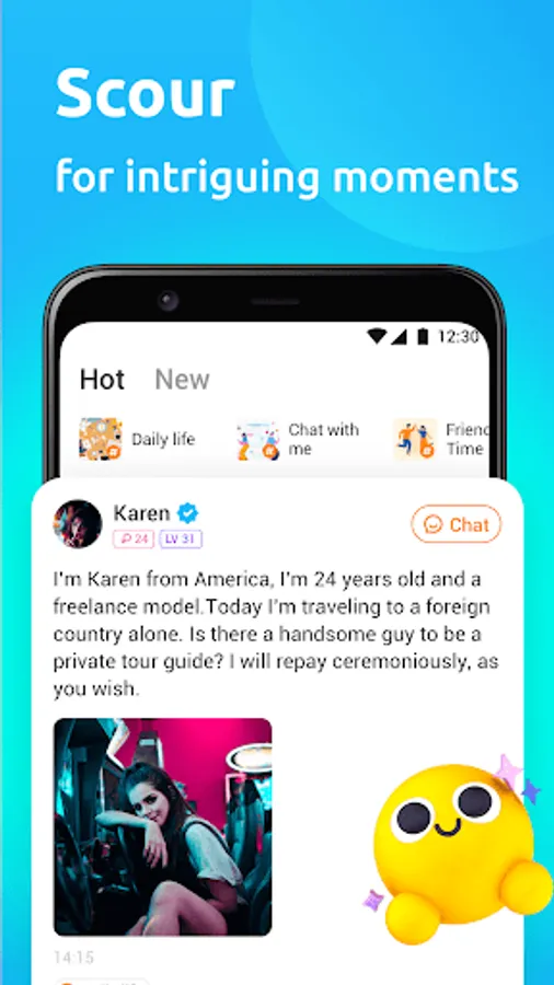 Use your profile to express yourself and make a great first impression.More than 90% of the users have passed the photo verification. We are committed to creating a more authentic platform for making friends.