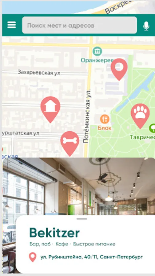 С нашим приложением эти и другие вопросы будут решены. На карте будут отмечены места и заведения, куда можно с питомцем.