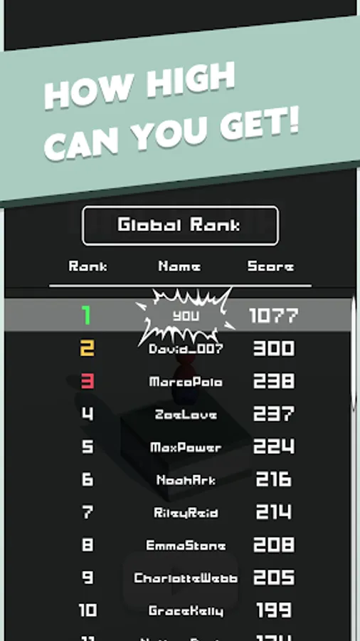 When the player holds down the screen and releases his finger, the protagonist will jump to the next block. The longer you press it, the farther the protagonist can jump. but! pay attention! Don't let the main character fall off the cube, then the game will be over...
