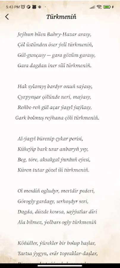Klassiki we döwrebap şahyrlaryň goşgulary, dürli mowzuklardaky hekaýalar we makalalaryň bir ýerde jemlenen programmasy
