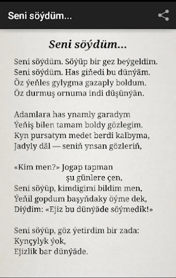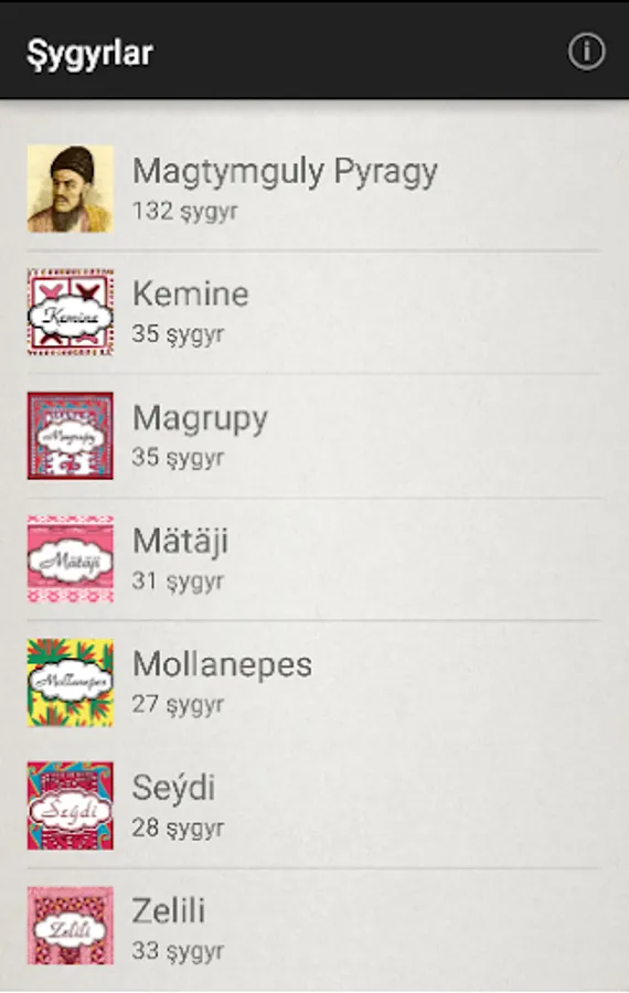 Bu programma - Türkmen edebiýatynda uly yz galdyryp giden beýik şahyrlarymyz Magtymgulynyň, Keminäniň, Magrupynyň, Mollanepesiň, Mätäjiniň, Seýdiniň, Zeliliniň, Kerim Gurbannepesowyň, Gurbannazar Ezizowyň we Berdinazar Hudaýnazarowyň şygyrlaryny özünde jemleýän programmadyr.