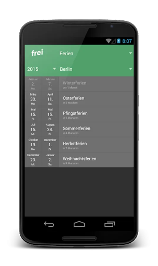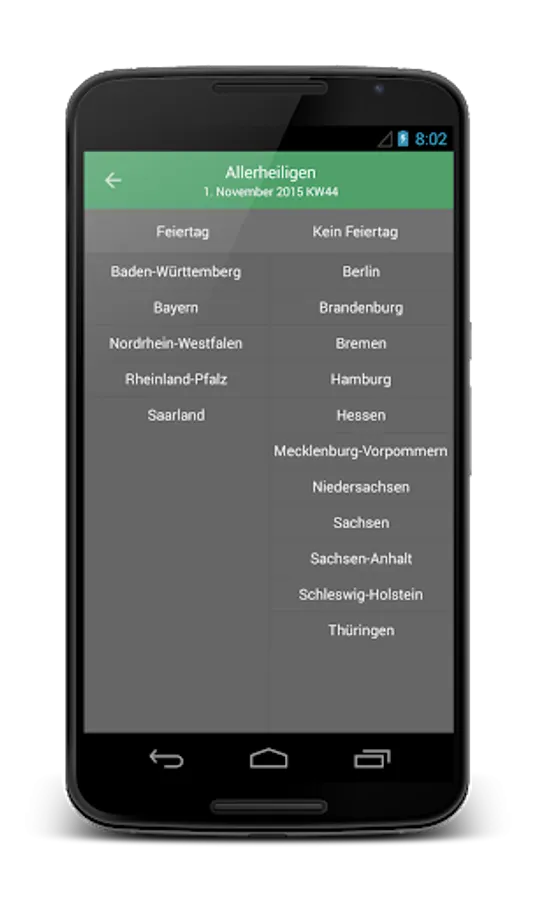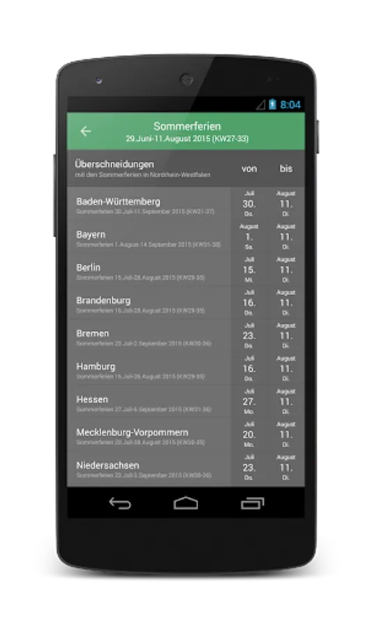 Holidays and Vacations Free 2015, 2016 in North Rhine-Westphalia, Bavaria, Saxony, Berlin, etc. - all federal states in Germany - quickly in the overview in the free app. Finally holiday plan!