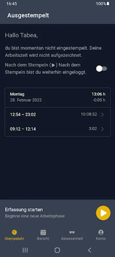 The TimeSec app is the ideal supplement for recording working times. It offers the following functions: