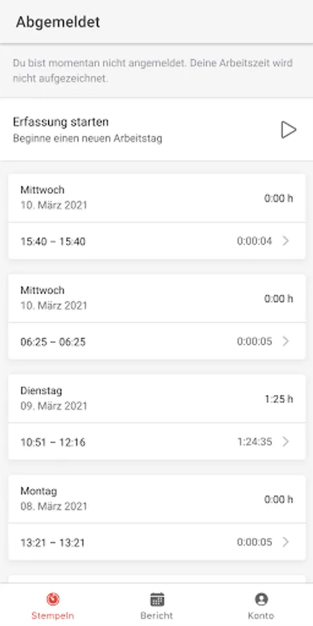 The Zeitstrom app is the ideal complement for recording working times. It offers the following functions: