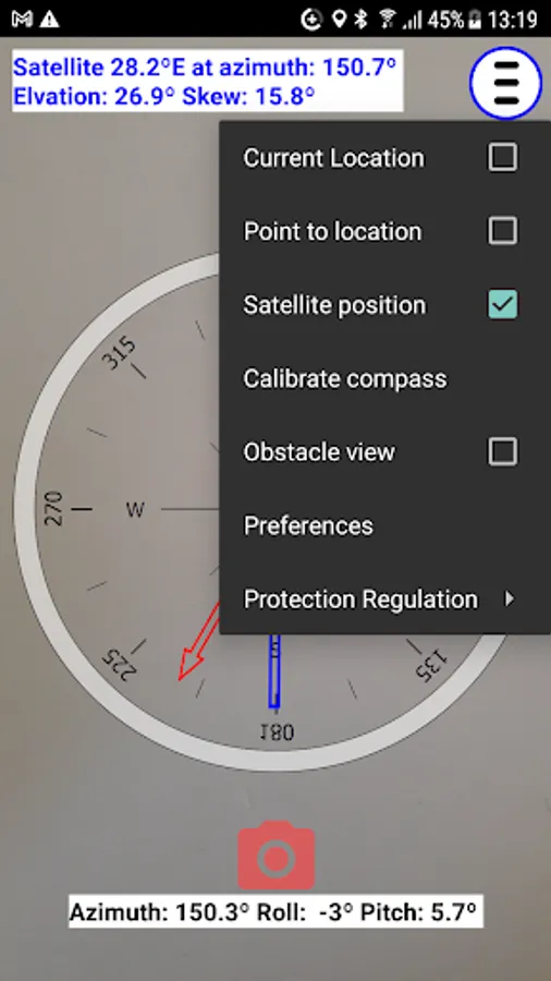 It helps pointing your dish to a TV satellite. Depending on your location it calculates the satellite's position in the sky. It displays the horizontal or vertical position of the satellite in the sky. The horizontal position is used to align or point the LNB arm to the satellite. The vertical position is used to find obstacles that block the satellite signal.