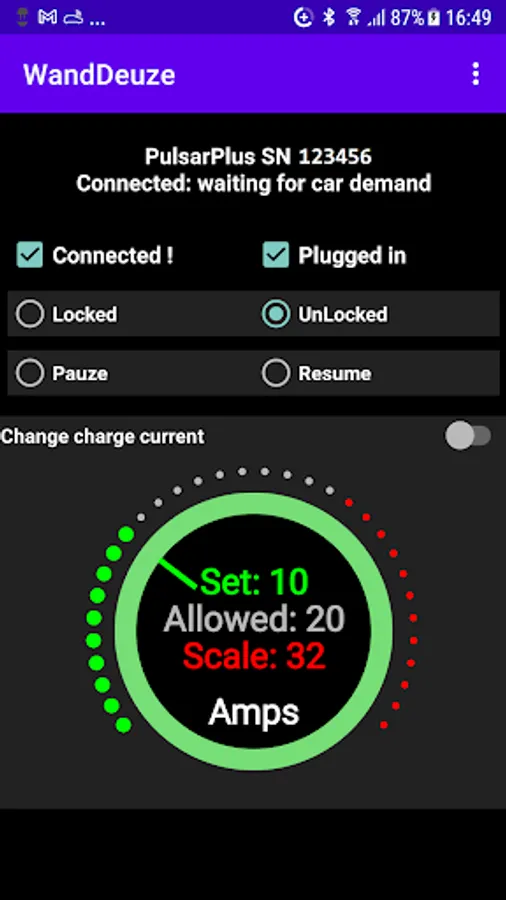 - pauze or resume the charge session