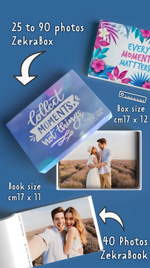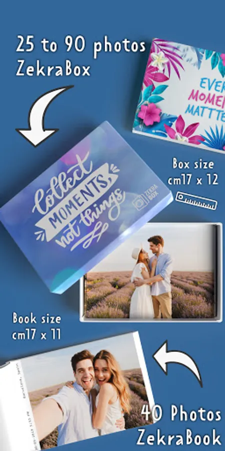 ⭐ Choose between a minimum of 25 and a maximum of 90 photos and we’ll print and deliver your photos in a snazzy box.