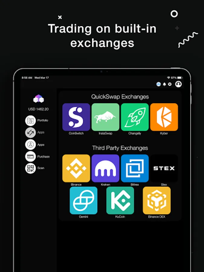 - Trade 1,000+ trading pairs across exchanges and quick swaps to get the best price possible.