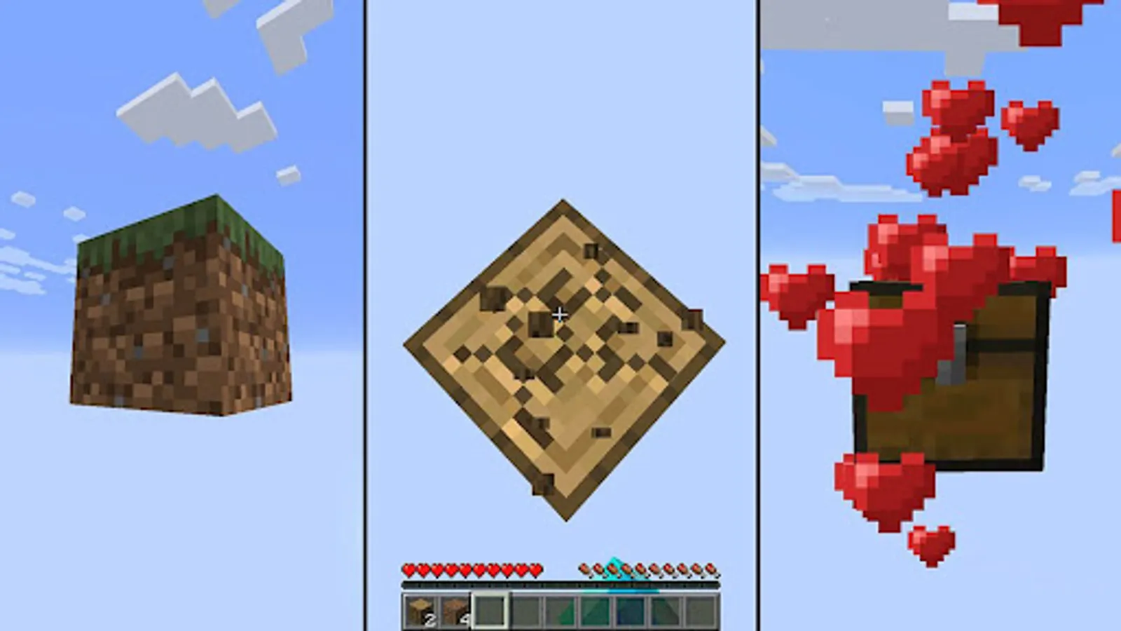 We have picked up quite a variety of survival maps, such as one block survival map, in which you find yourself on one block in the sky and