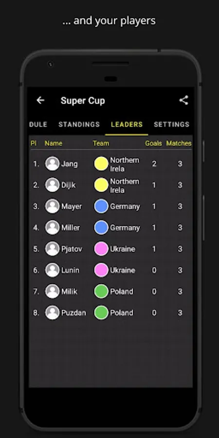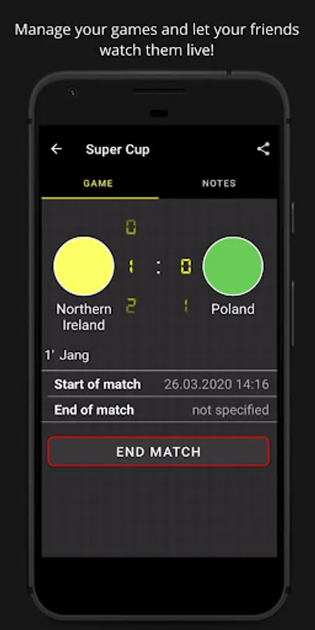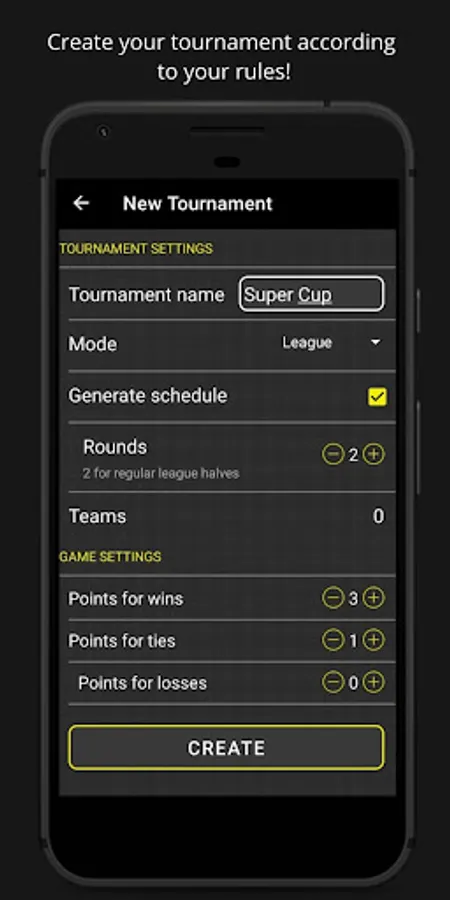 Easily publish tournaments and let your friends follow their teams and matches live.