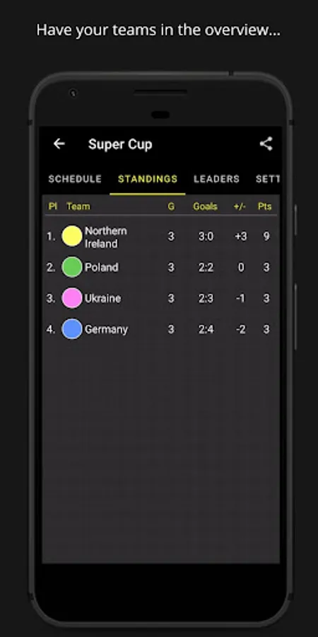 With total control over awarded points, length of matches and number of matchdays, a great overview and WITHOUT REGISTRATION, you can now easily manage multiple tournaments at the same time. Champion even creates a schedule for you if you like! Being a tournament-manager never was this easy!