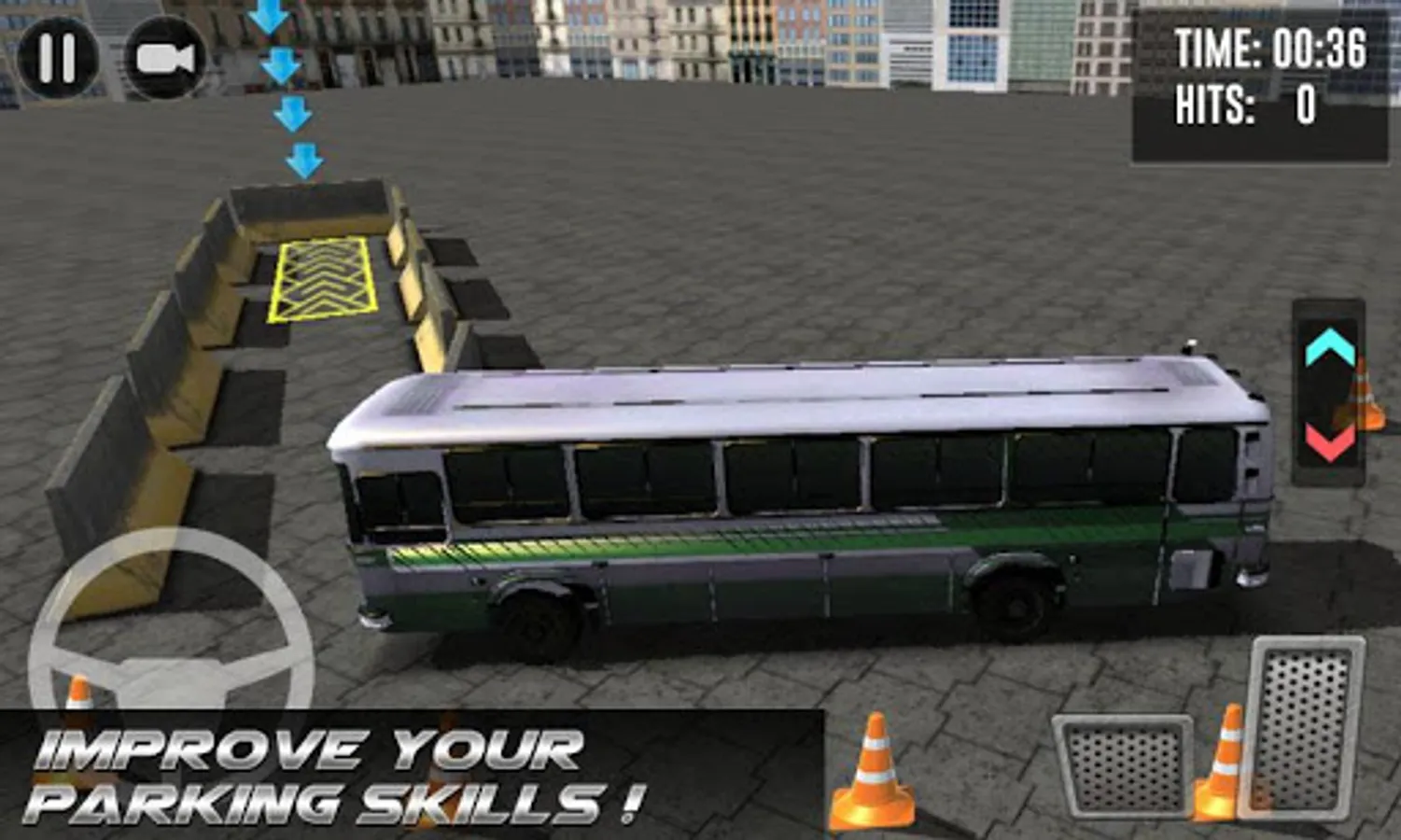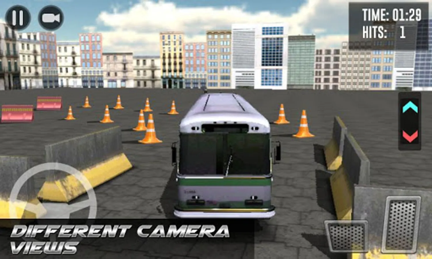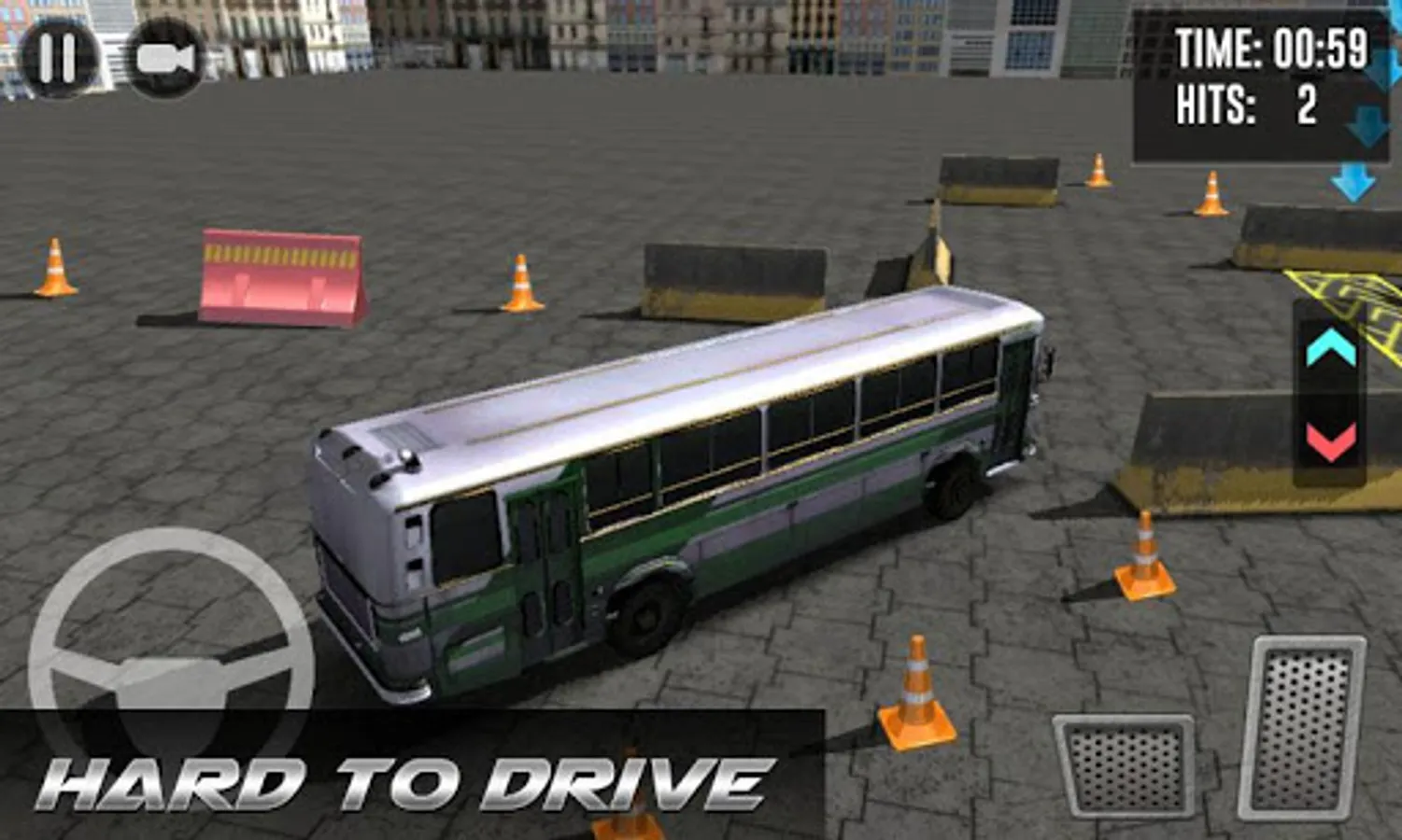 Control your bus in a real parking lot with an on-screen steering wheel, acceleration and brake pedals. Shift your gear forwards or backwards whenever you want to!