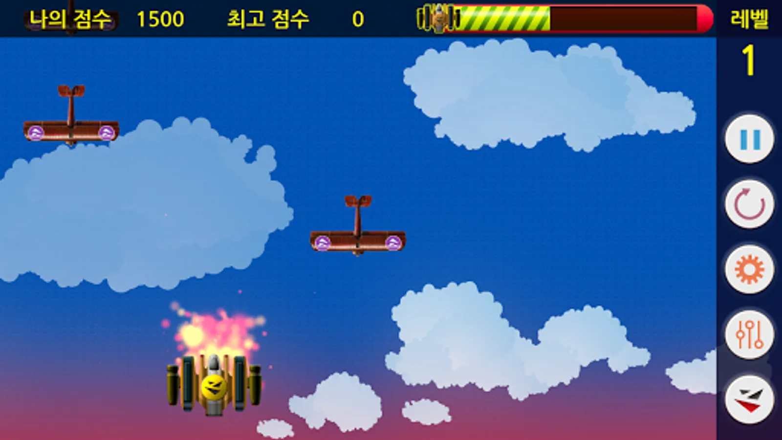 - Enemy airplanes of varying energy appear randomly in 5 points.