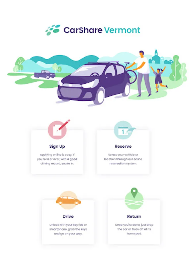 CarShare Vermont's reservation system. Apply for membership, change payment methods, schedule reservations, and access vehicles through this app.