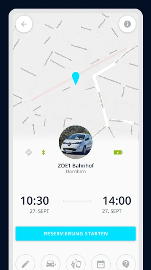 Start your reservation easily via the app. In the case of intermediate stops and at the end of the reservation, close the vehicle again via the app.