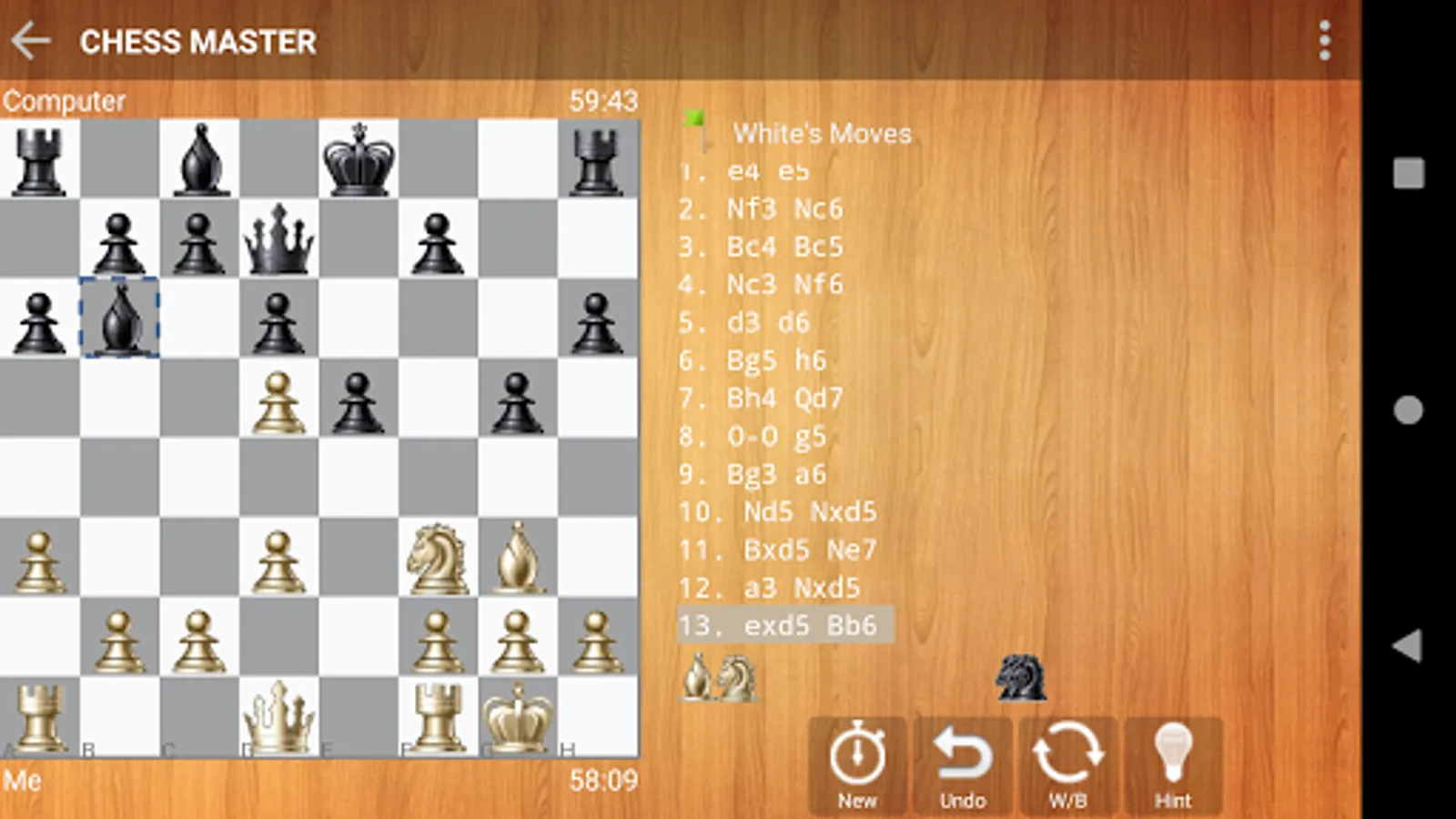 Play against computer with various difficulty level by different thinking times and search deep, including over 600 chess opening and PGN file reader.