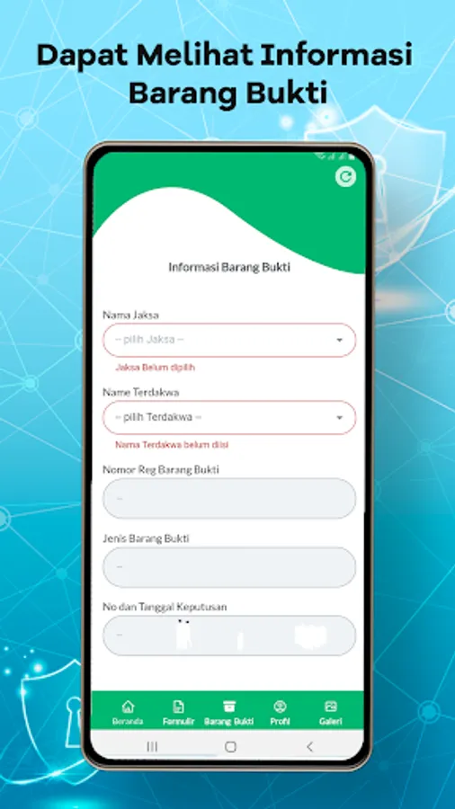 In this application you can check your belongings which have been used as evidence in a trial at the Cikarang District Court