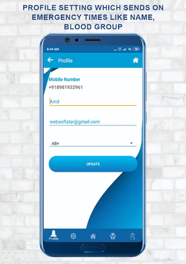 Send the current location, blood group, and battery percentage in just one click to the emergency contact.