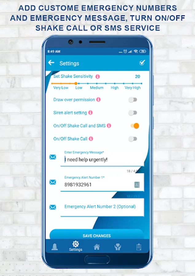Even if the Internet service is off on the user's phone, users can send an emergency alert to the emergency contacts if is in any danger and shakes their mobile (the screen light must be on).