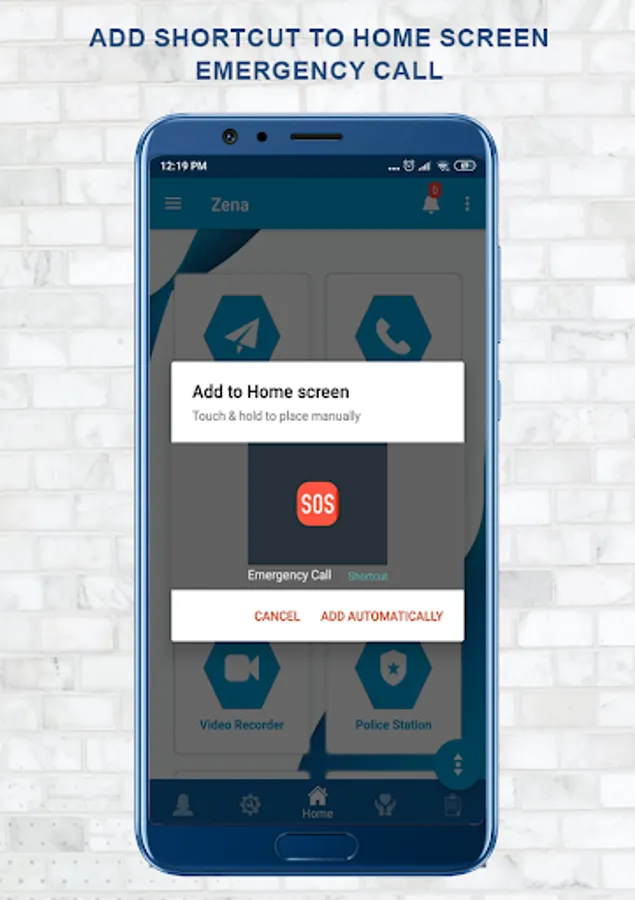 Users can create an emergency call shortcut or direct call from notification or the Zena app to the emergency contact. Also, users can send the location by SMS and use the flashlight SOS alert.