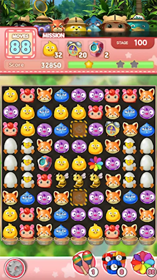 If you move the blocks and connect 3 blocks in the same shape, the blocks will be matched ^^/