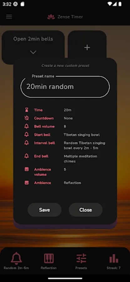 *Select from a range of meditation bells at fixed or random intervals.