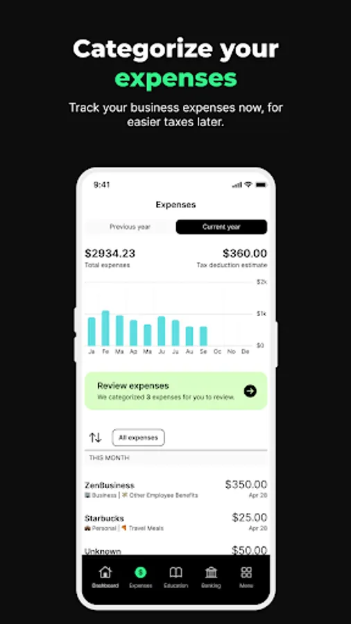 Track your business expenses now, for easier taxes later. You can quickly categorize expenses as Business or Personal for more organized bookkeeping.