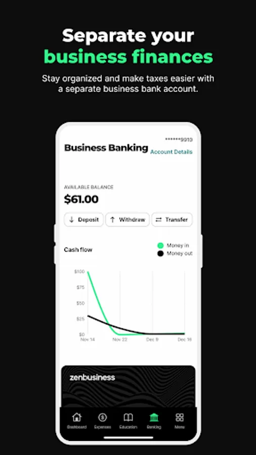 Use the app to secure your EIN (Employer ID Number), which you’ll need to hire employees, open a business bank account, and more.
