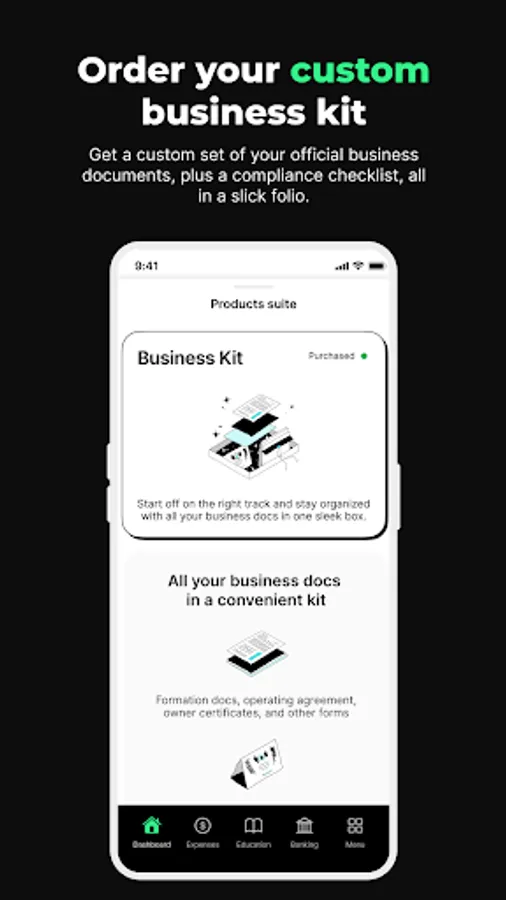 Get a custom set of your official business documents, plus a compliance checklist, all in a slick folio. And soon, you’ll be able to order even more products and services from the app.