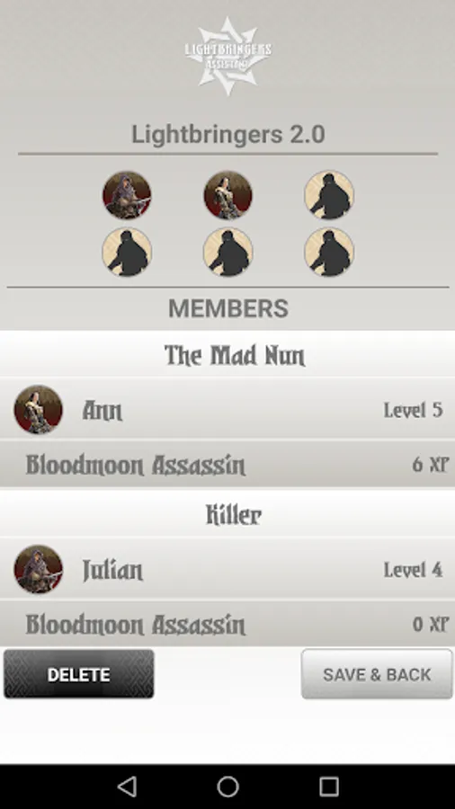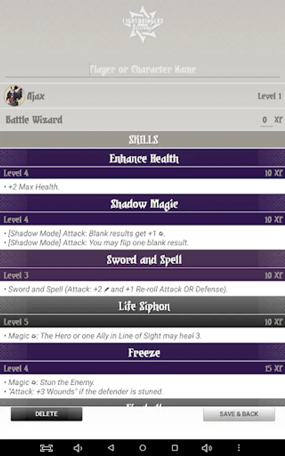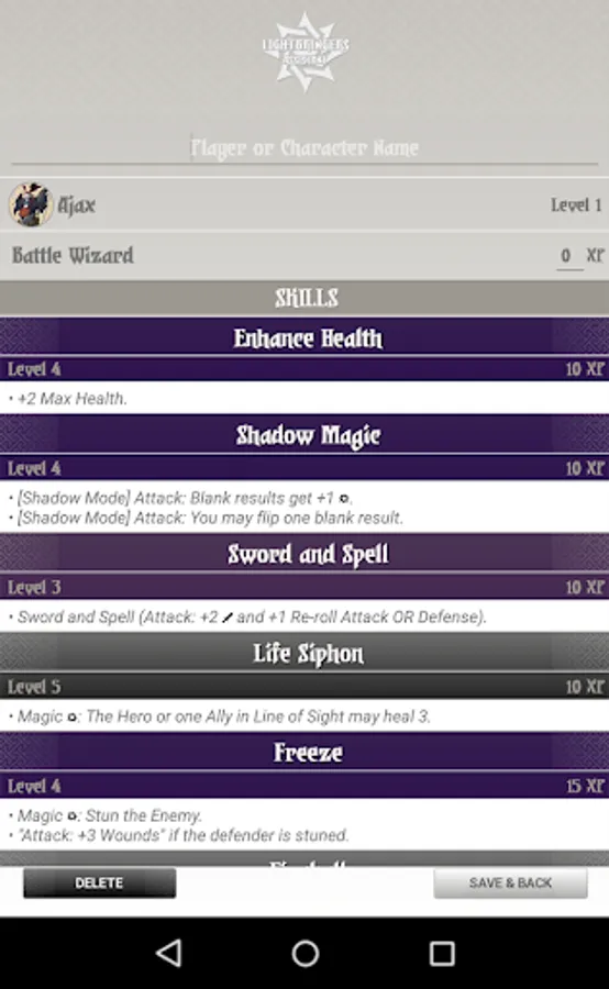 The app also allows you to generate your own heroes (chosing the Hero, Class and Skills) and your own groups. This will allow you save the progress along a campaign of all the Heroes in the group or only look for the perfect combination to eradicate the forces of Darkness!