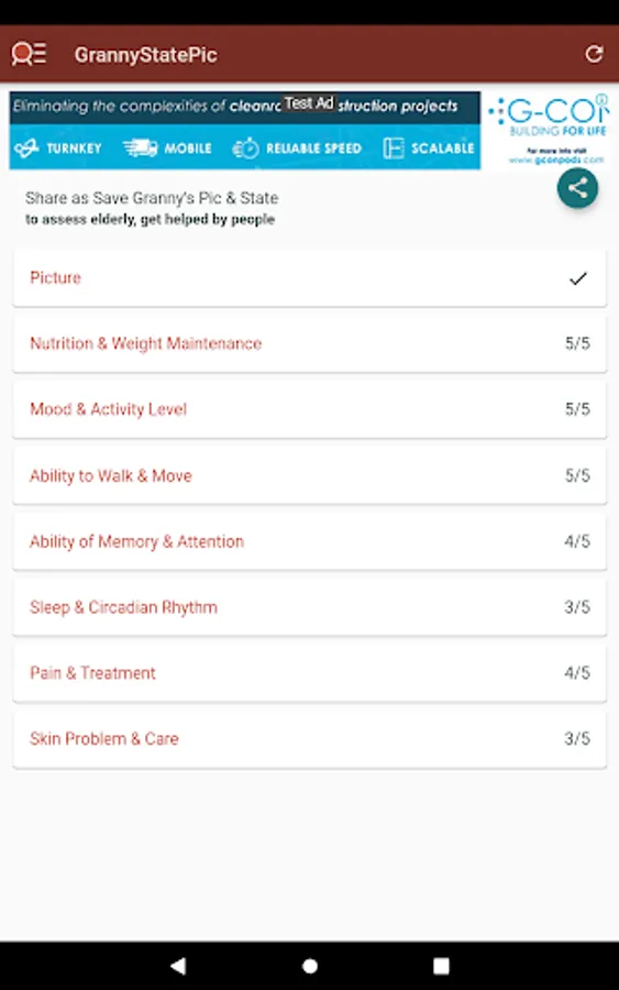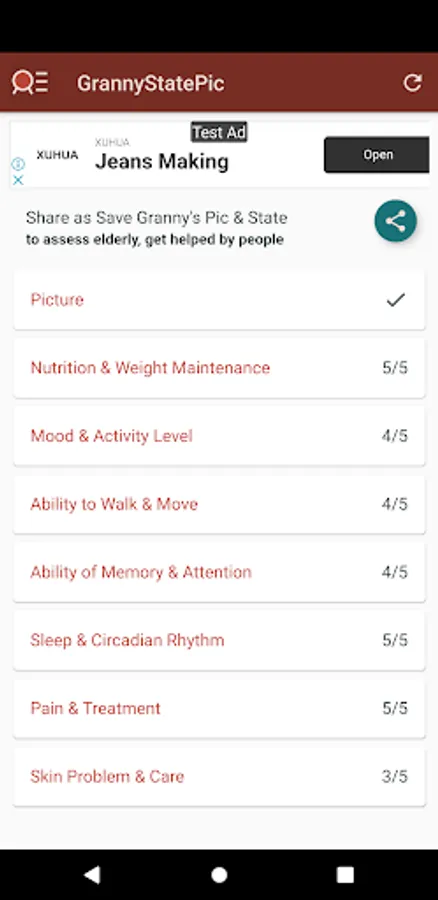You can share as save the granny's pic and state with family & friends via SNS, messneger APP.